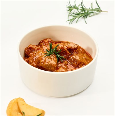 Carne di bovino, passata di pomodoro, sedano, carota, cipolla, paprika, burro, vino bianco e olio di girasole