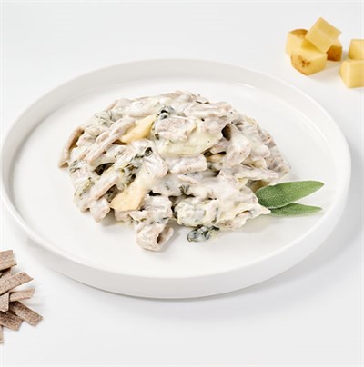 Pasta al grano saraceno, panna, Trentingrana, edamer, biete, erbette, patate