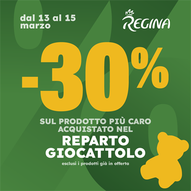 L'offerta è valida in tutti i negozi Regina dal 13 al 15 marzo 2026