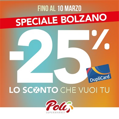 dal 25 febbraio al 10 marzo 2026 esclusivamente presso i Supermercati Poli e MiniPoli di Bolzano, Laives, Appiano e San Giacomo. Si possono usare un massimo di