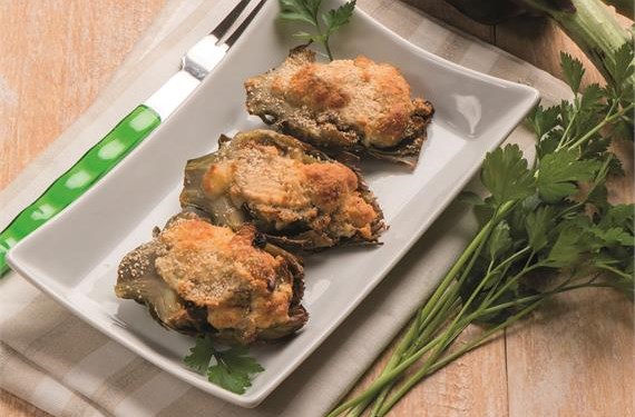 aprendo leggermente la corolla per togliere la barbetta interna. Mano a mano che sono puliti, conservarli in una ciotola con acqua e limone per non farli annerire. Portare a ebollizione due pentole d’acqua salata e lessare separatamente i carciofi e le patate precedentemente lavate. Quando le verdure sono morbide, scolarle e lasciare raffreddare i carciofi. Pelare le patate e schiacciarle ancora tiepide. Mettere a bagno l’uvetta in una ciotolina con acqua e tostare i pinoli in una padella antiaderente senza aggiungere altri grassi. Per preparare la farcia, mescolare le patate con il gorgonzola a dadini, i pinoli, l’uvetta scolata, olio, sale e pepe. Riempire i carciofi con il mix ottenuto e adagiare su una teglia foderata di carta forno. Condire con un filo d’olio e cuocere a 180 gradi in forno per 25-30 minuti.