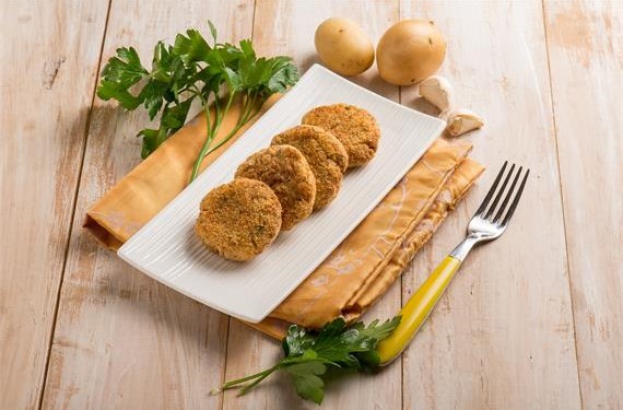 polpette con le mani e schiacciarle leggermente per appiattirle. Poi passarle nell’uovo sbattuto e nel pangrattato.