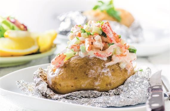 Quando le patate sono pronte, incidere e aprire leggermente a metà. Sgranare la polpa con una forchetta e condire l’interno con sale, pepe e un fiocchetto di burro.